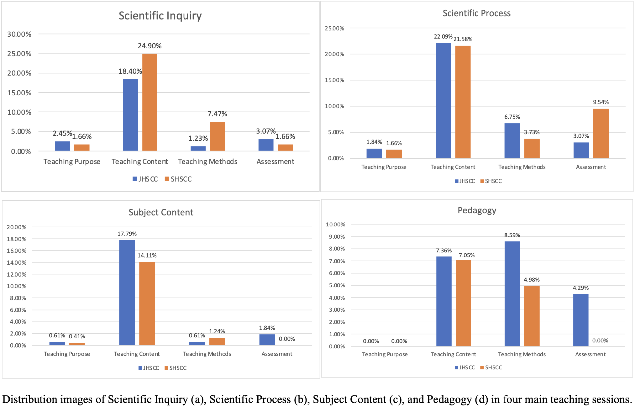 - RQ 2: What are the differences in the distribution of the four meanings of “experiment” in each teaching session between the junior high school (JHSCC) and high school (SHSCC) chemistry curriculum standards?