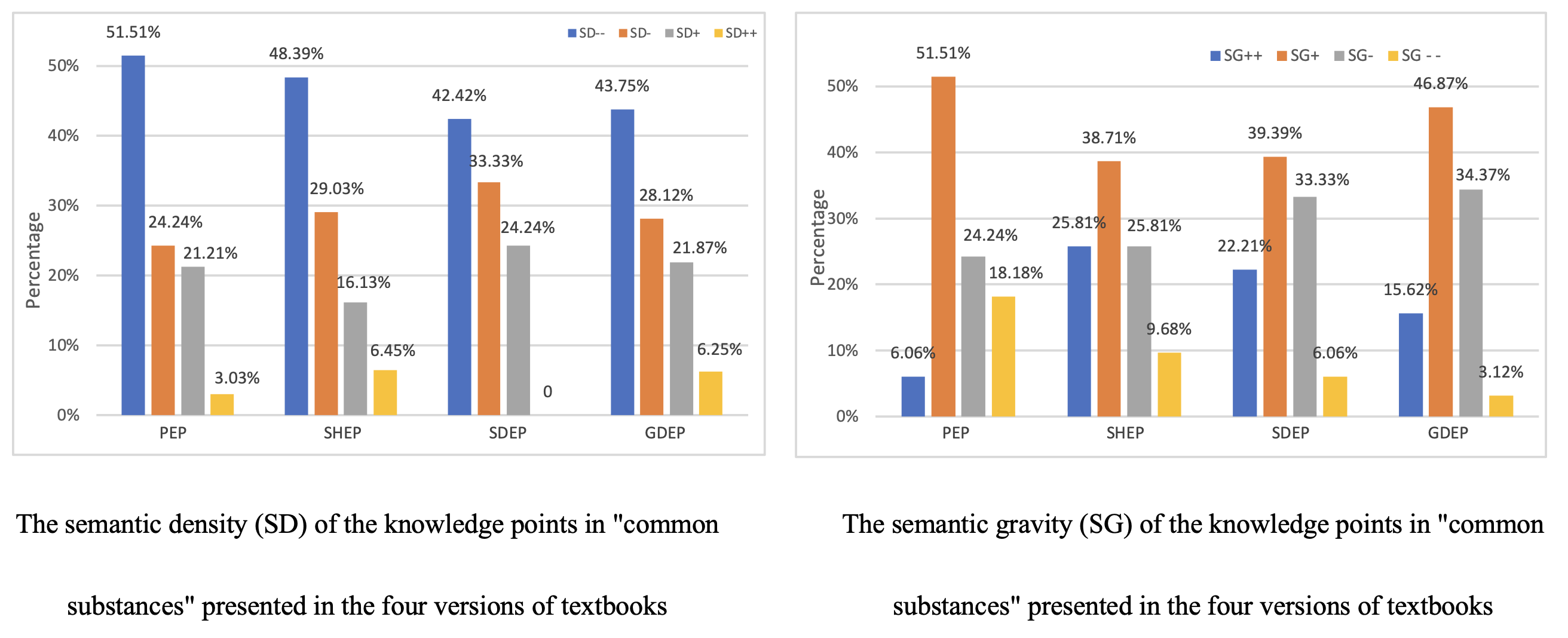 Based on the principles of Semantics/LCT, a new coding scheme was tailored to the current study to analyze the representation of 34 knowledge points in the four series of chemistry textbooks. Results show that these knowledge points are elaborated with less complexity while avoiding unnecessary abstraction in the four series of chemistry textbooks. Specifically, it was found that the overwhelming majority of the knowledge points are represented with low semantic density and high semantic gravity. Some specialties were also identified with individual series of chemistry textbooks. The implications of the results of this study are discussed for the effective representation of science (chemistry) knowledge in textbooks.