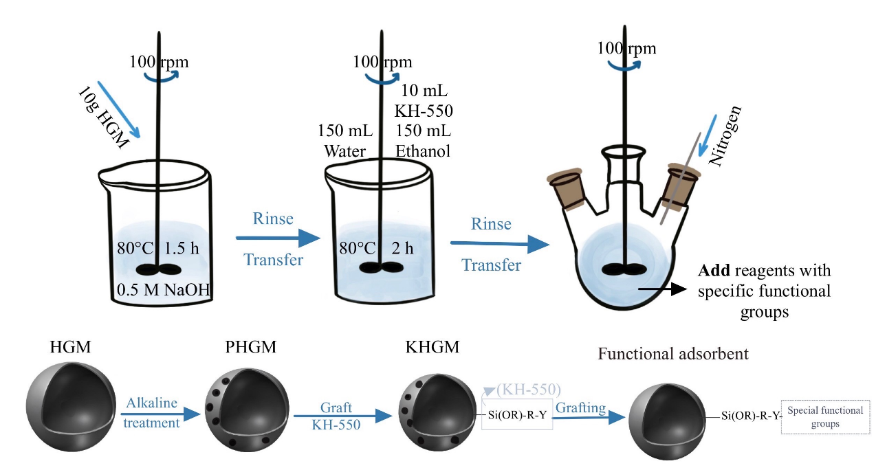 Hollow glass microsphere (HGM) is a kind of hollow closed sphere, which has the advantages of low density, stable chemical properties, reusable, excellent compression resistance, high adsorption capacity, high selectivity, etc. HGM has been widely used in aerospace, petroleum industry, thermal insulation materials, and other fields. Due to the unique structure and chemical properties of HGM, it has extremely high potential value in the field of wastewater treatment, and is an ideal carrier for preparing adsorbents with self-floating adsorbents. Modifying it with specific functional groups can enhance the adsorption capacity for specific pollutants and improve the adsorption selectivity.